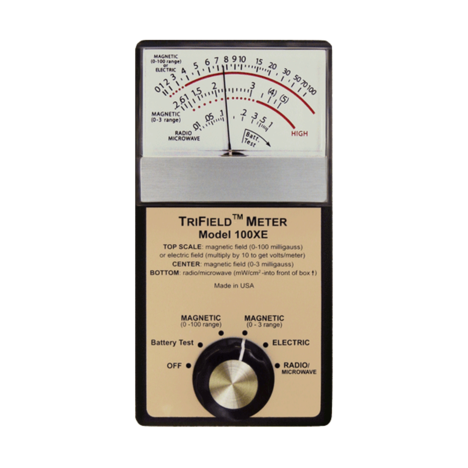This Tenmars radiation meter is used to indicate electromagnetic pollution generated by transmitting equipment. It can measure voltage or a current, electric (E) and magnetic (H) fields. All types of radio broadcasting and TV transmitters produce electromagnetic fields, and they also arise in industry, business and the home where they affect us even if our sense organs perceive nothing